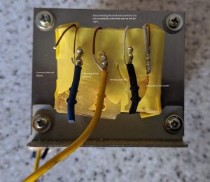 I do have a spare transformer from another UPS of the same type I previously scrapped and as you can see it has been pre experimented upon. That UPS had an electronics fault where it would go into overload alarm as soon as a light load was attached. I pulled off the yellow tape which revealed a fourth connection that wasn’t soldered to anything. There are two windings; one with thick wires that measure about 1.2 ohms and a tapped winding with thin wires. The connection at the far left is a common neutral followed by the UPS output winding when inverting then the live connection for the input winding used for powering the electronics and charging the battery. Finally the connection at the far right appears to be a 220V tap for the input winding. It has a thick wire also attached but has no connection to the other three connections. Very odd, must be broken internally but then why would it be connected? A fault maybe but both transformers were the same.