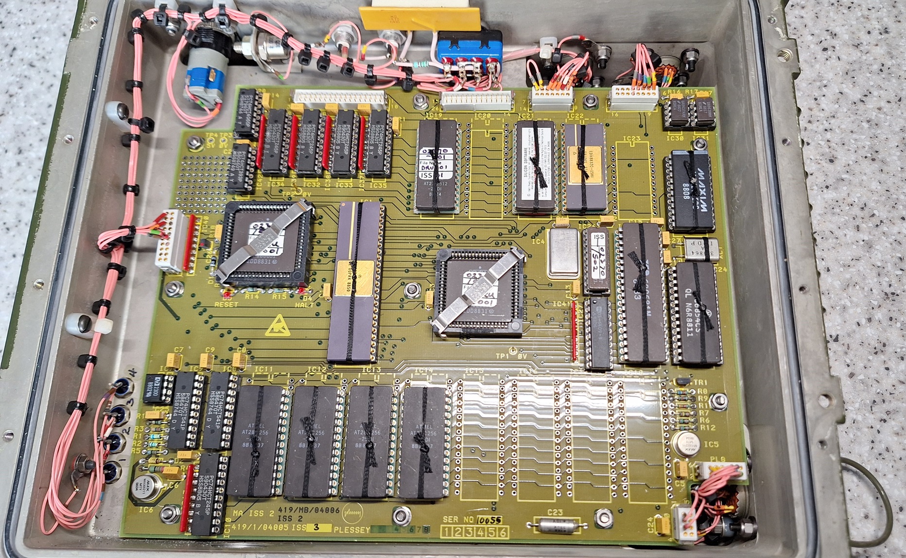 Here I have a PRS-2026C Data Retrieval unit which is part of the GEC-Marconi (formerly Plessey Avionics) ESD2020 system used for fault diagnosis and servicing of the Harrier GR5 and the AV8B aircraft. These are no longer used by the air force and find themselves onto eBay and other military surplus sites. I was donated one for a teardown video so I thought I’d take a look inside.